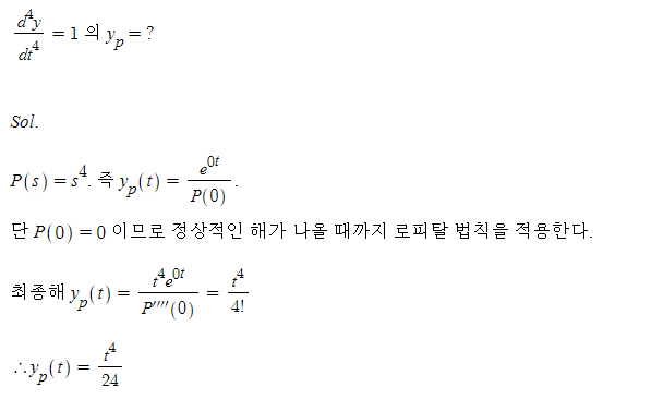 이번에는 영공간 해를 구하는 방법을 사용하여 방정식이 특정 형태의 입력 q(t)를 가질 때 특수해를 구하는 방법을 공부한다.