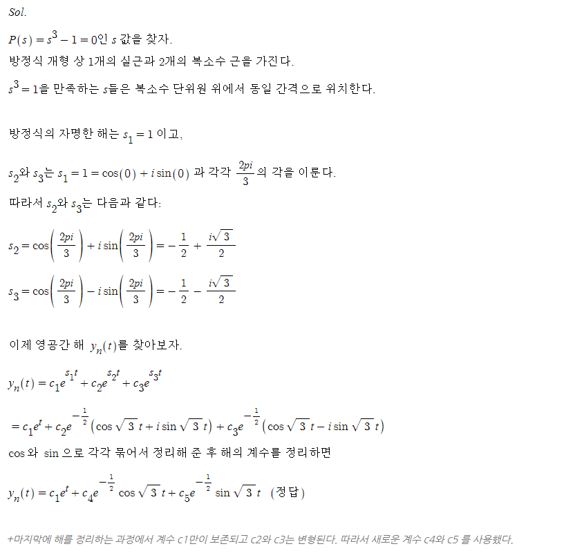 (2.4절 연습문제 04-a 번)y''' - y = 0 의 s1 에서 s3 까지의 근은 무엇이며 영공간의 해들은 무엇인가?