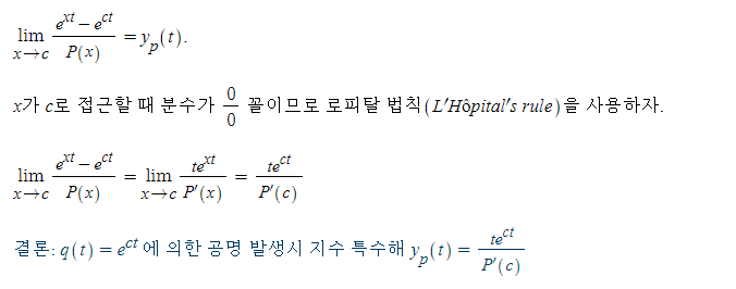 이제 x를 s에 접근시켜 q(t) = e^ct 일 때의 특수해를 구해보자.