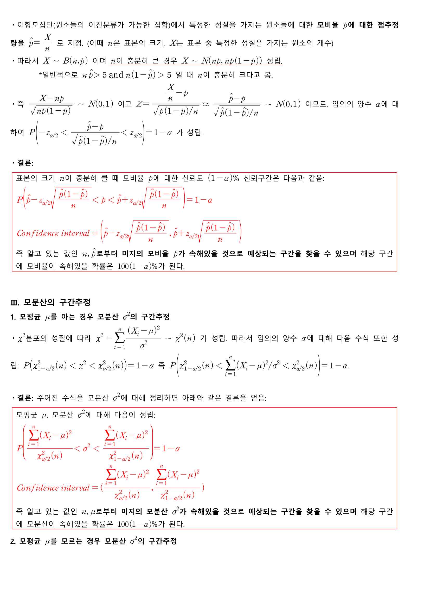 contents: 모평균, 모비율, 모분산의 구간추정, 신뢰구간, 표본의 크기