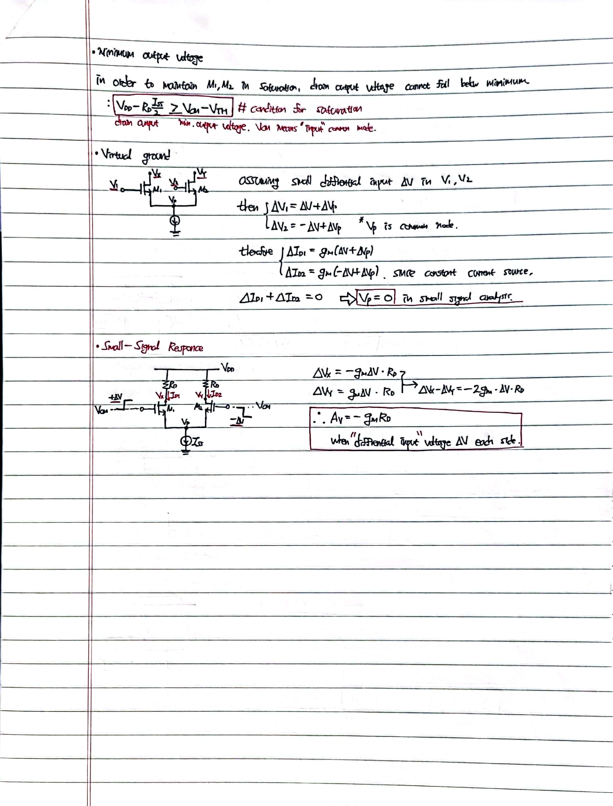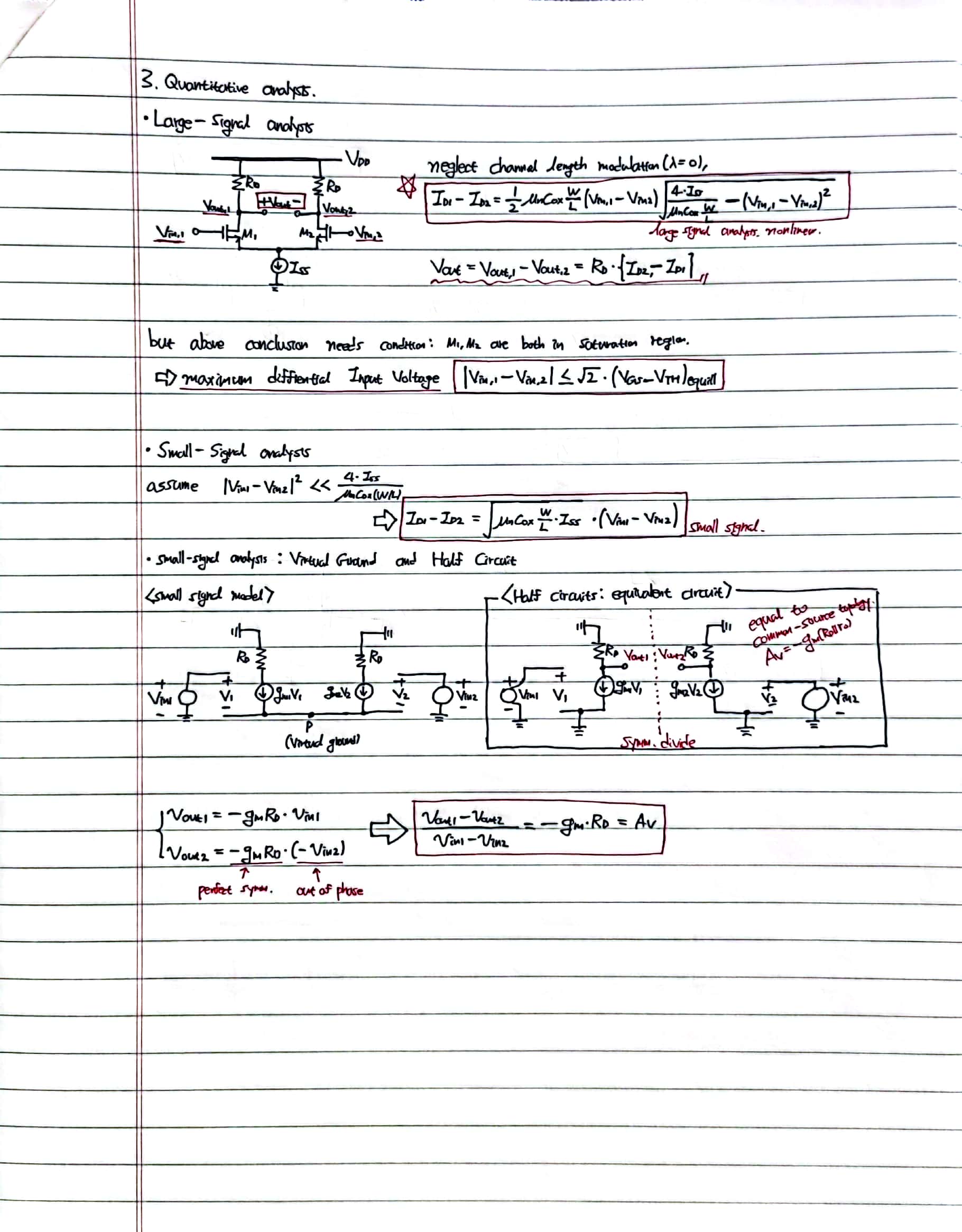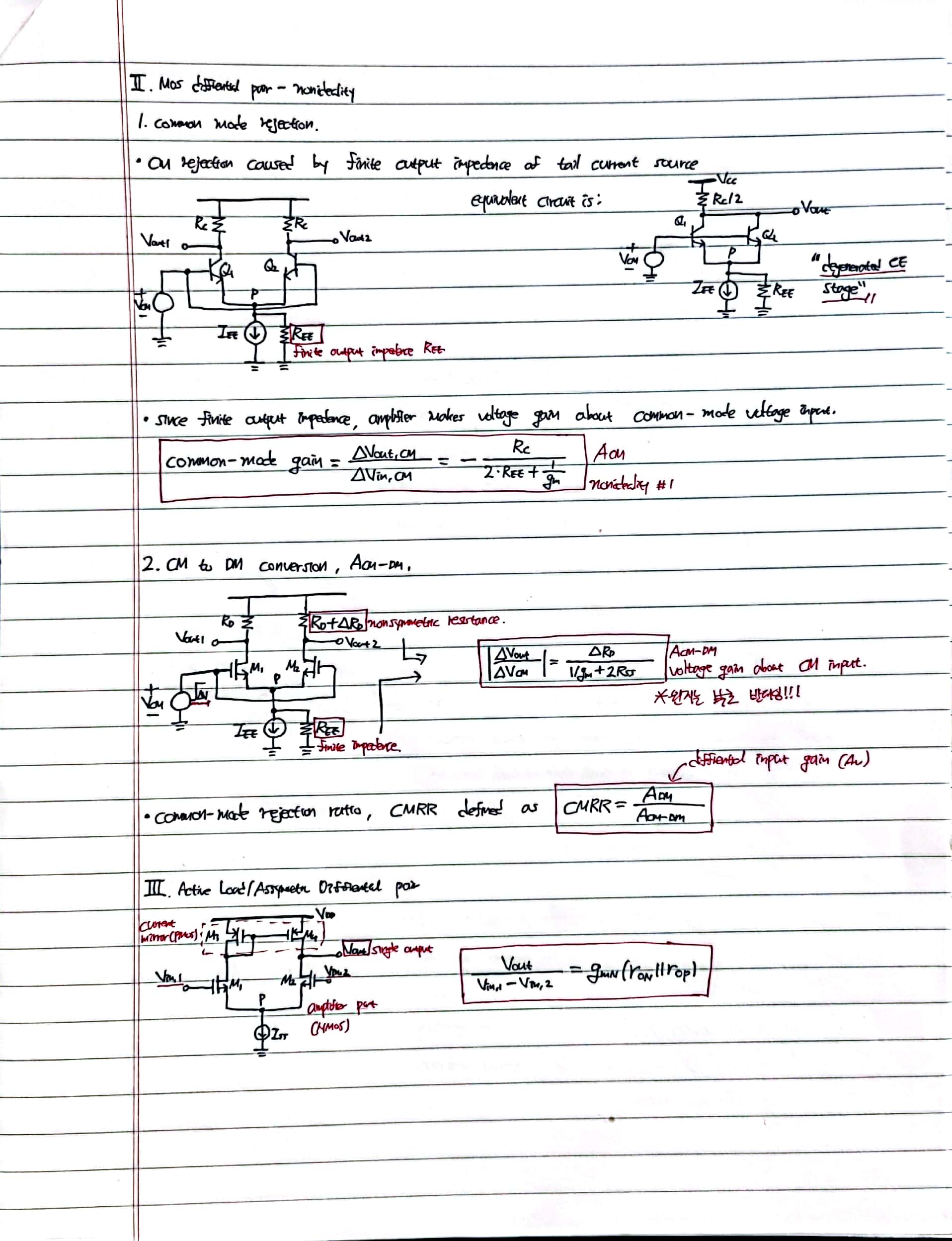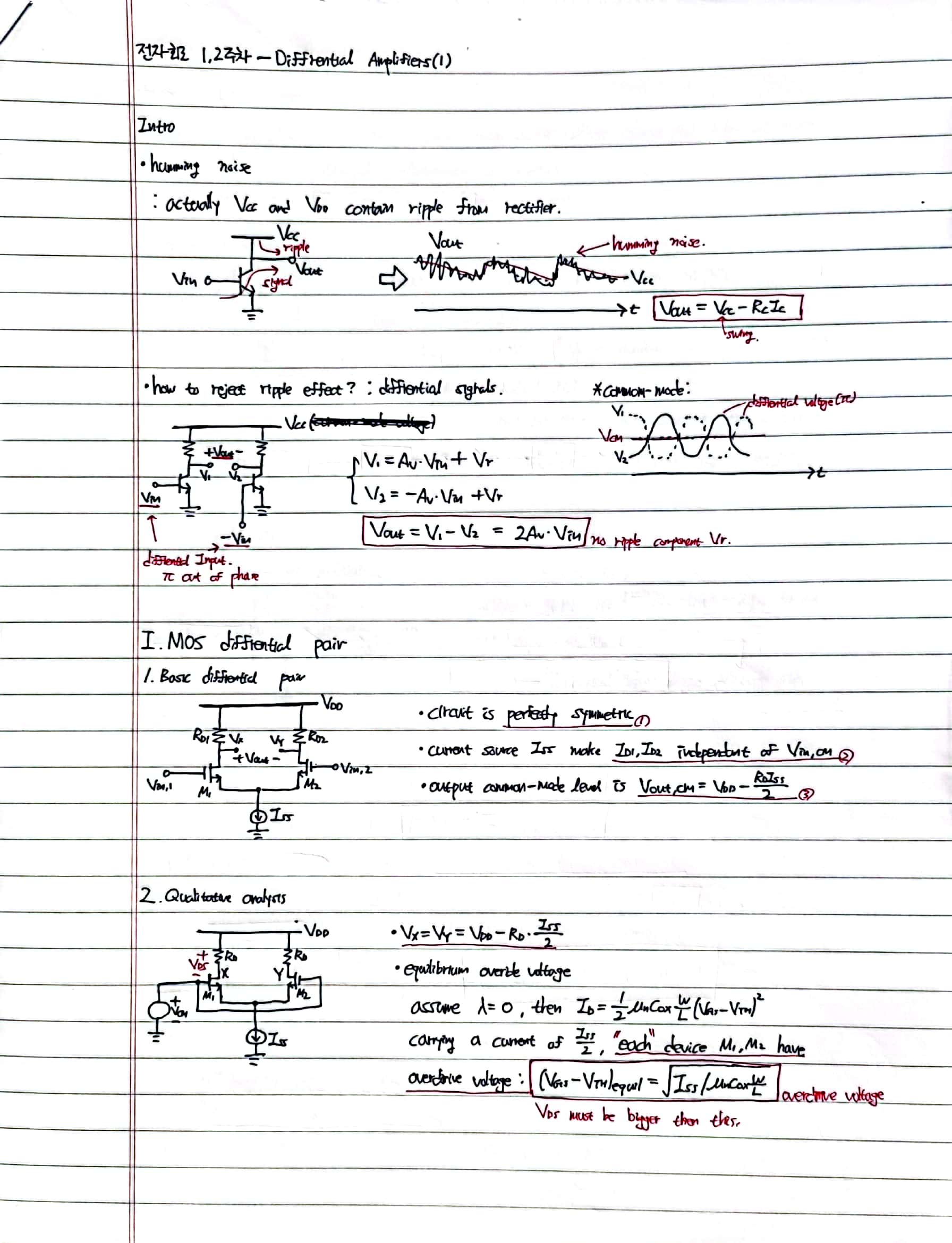 contents: Diffrential MOS pair, small-signal response, commom mode gain, CMRR