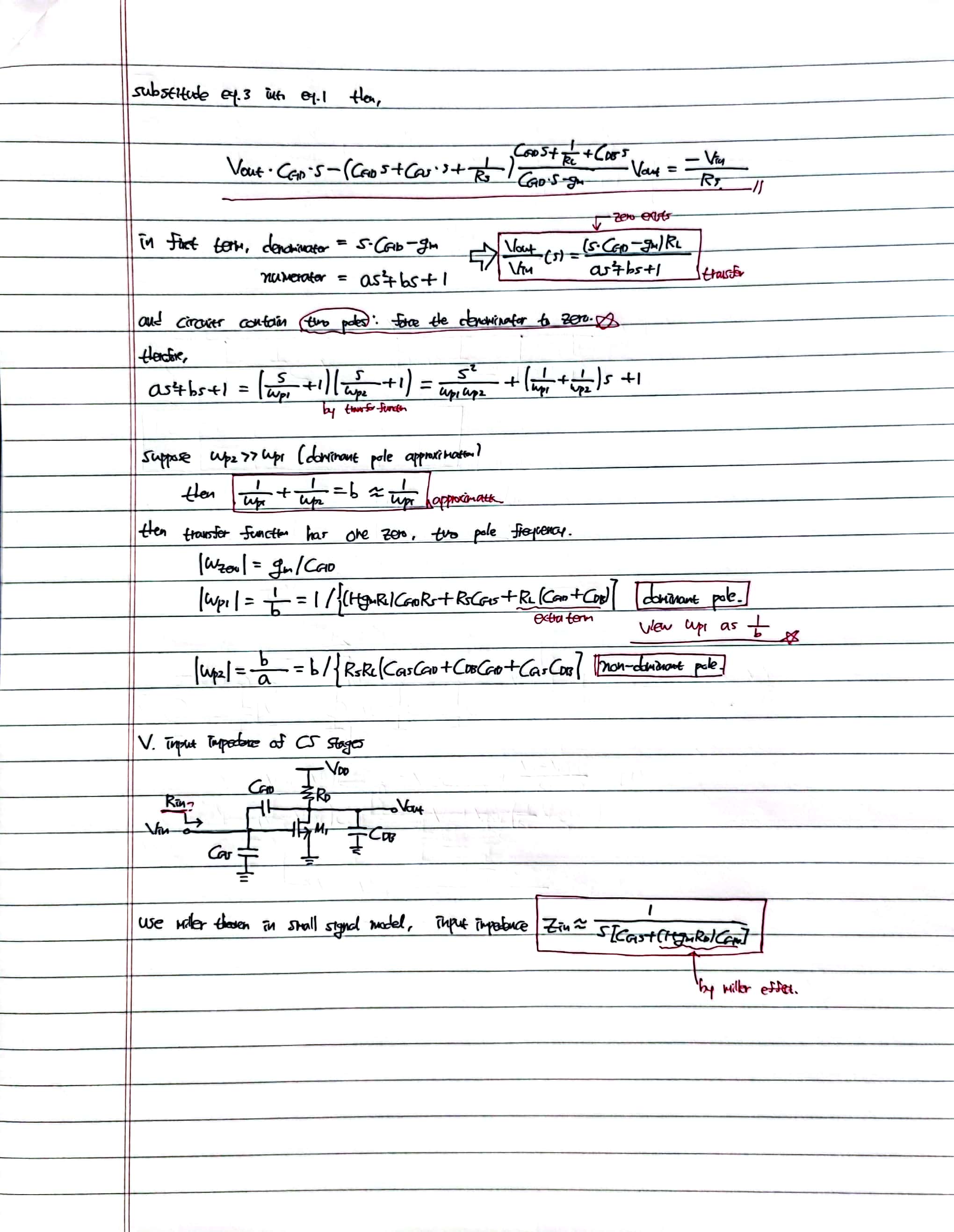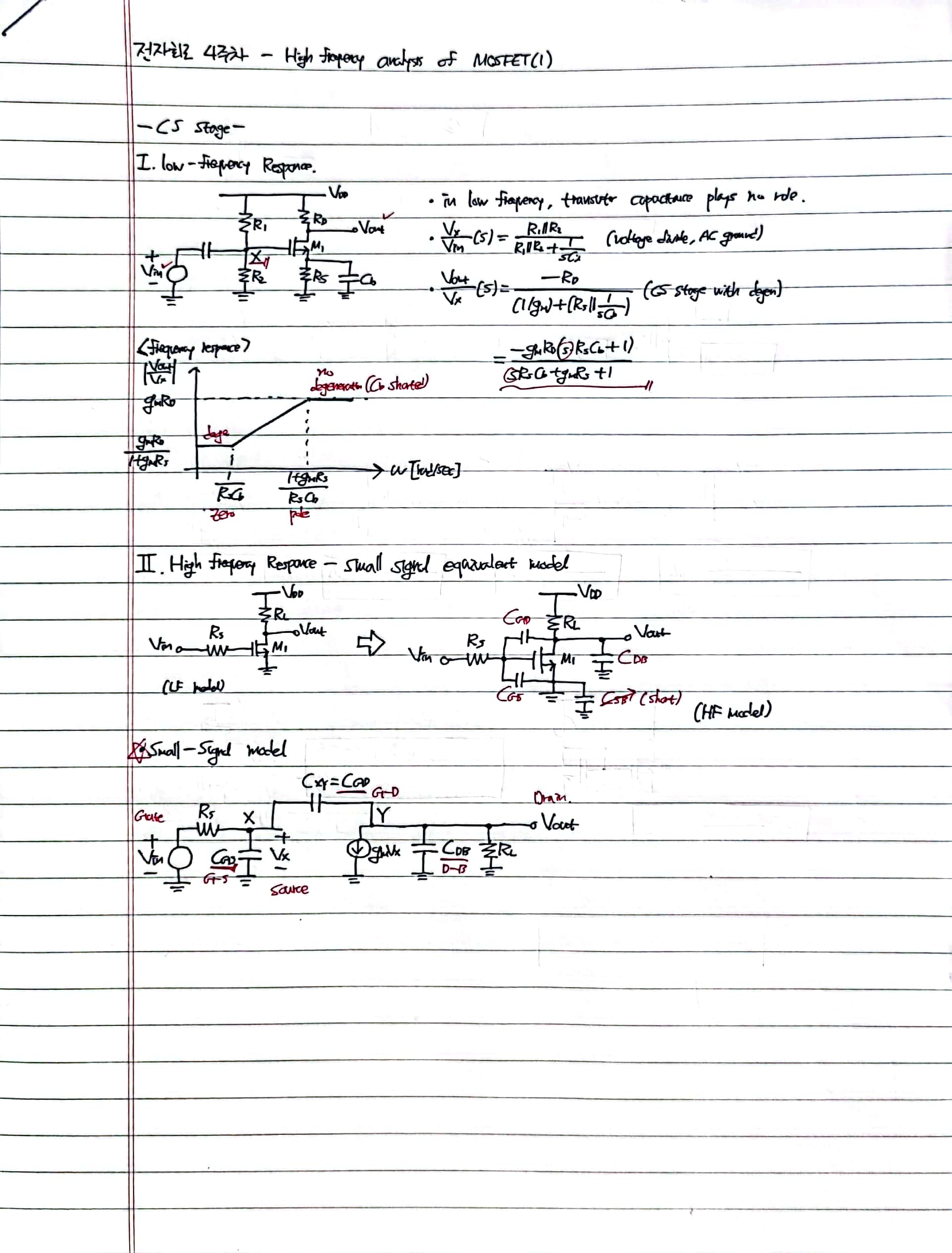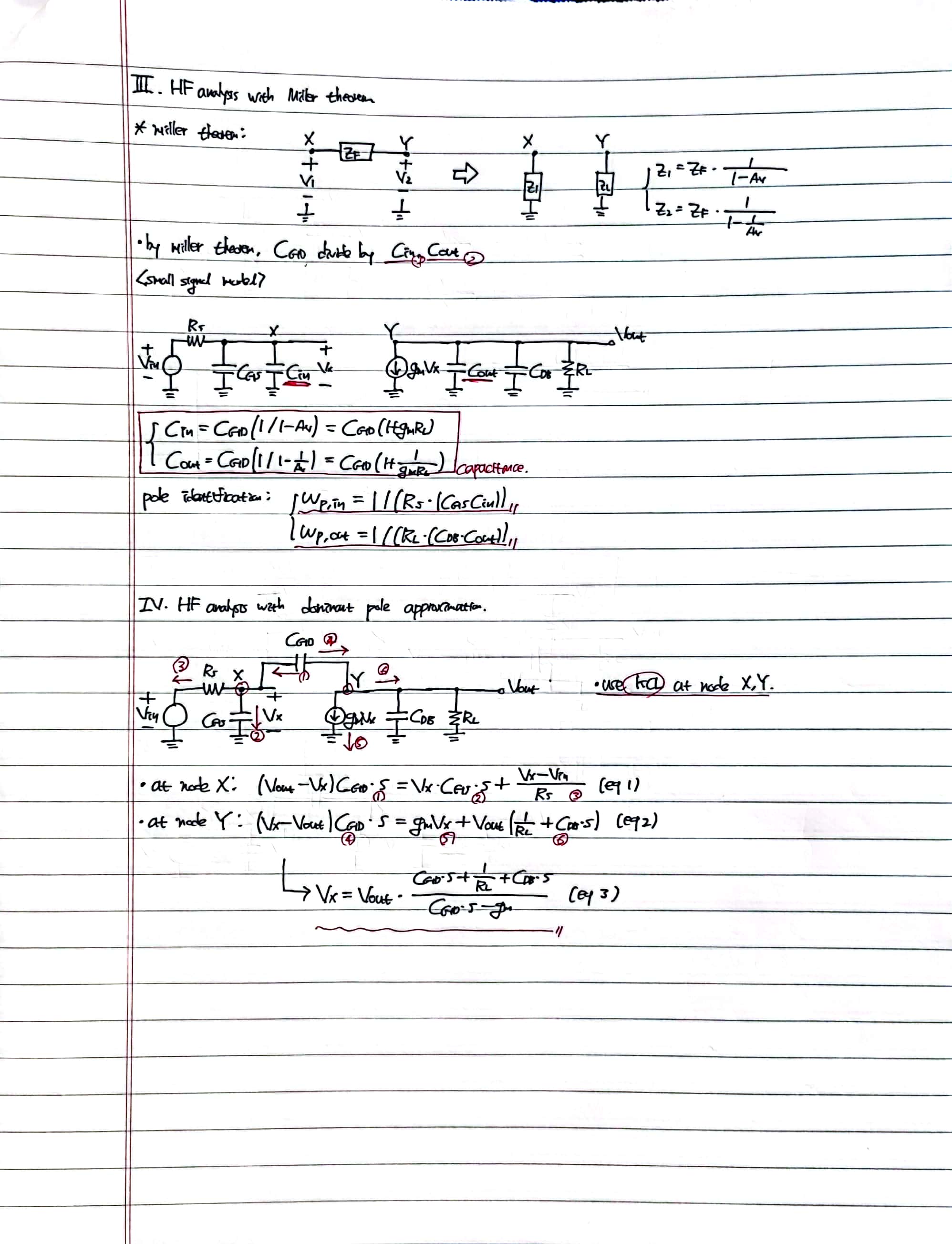 contents: MOSFET's small signal model in high frequency, analysis with Miller theorem, Dominant pole approximation, input impedence in HF