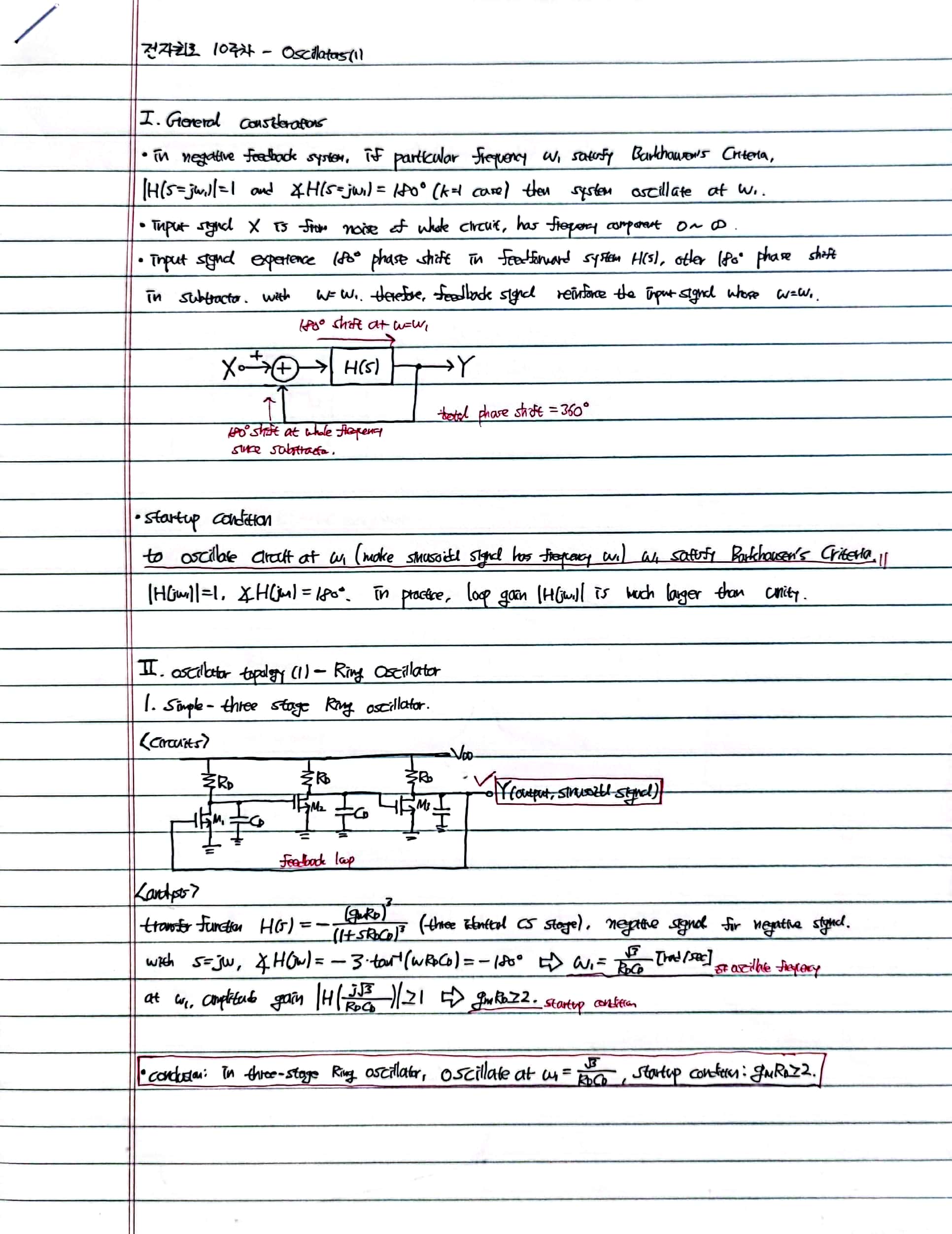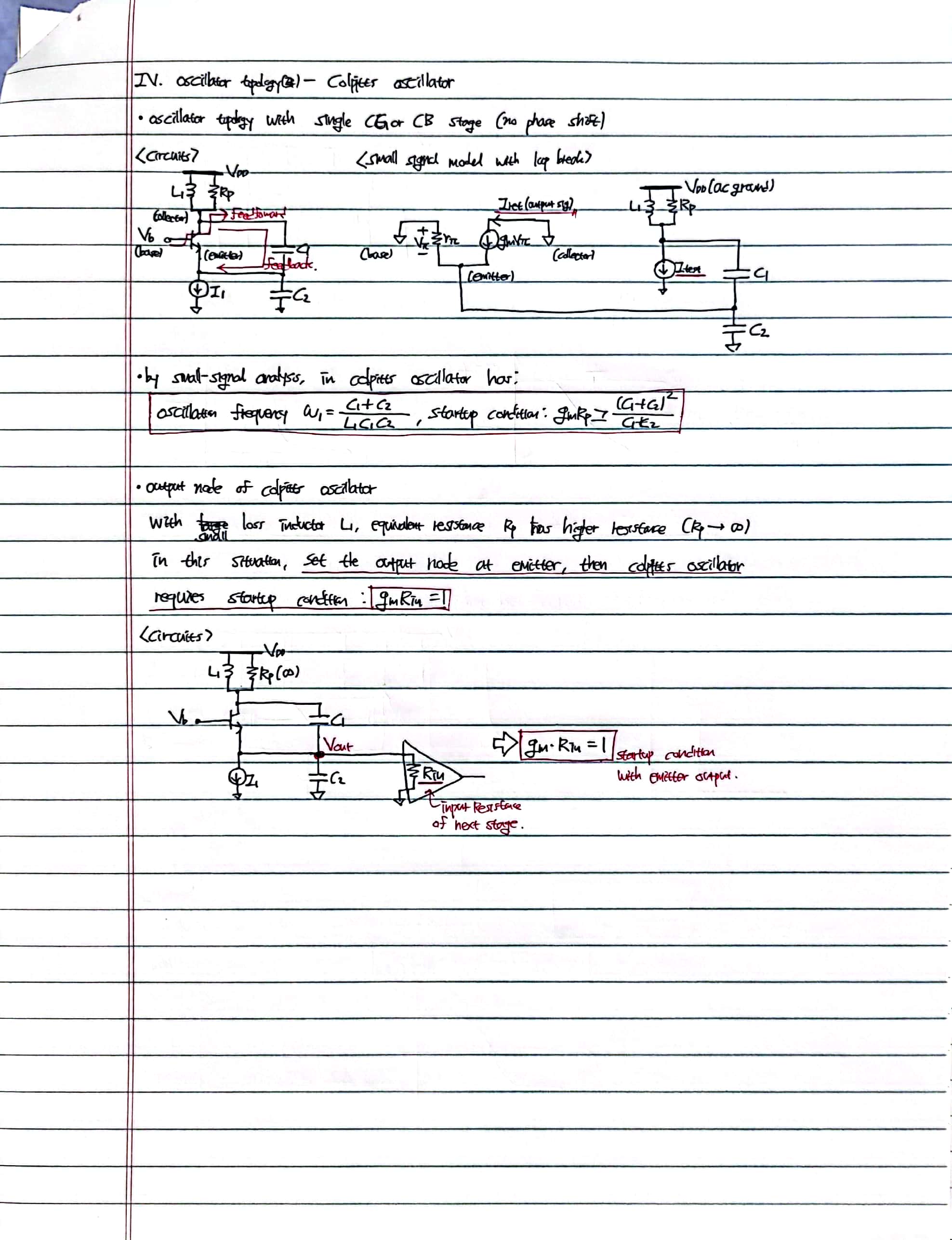 contents: startup condition, Ring oscillator, LC osciilator, Colpitts oscillator