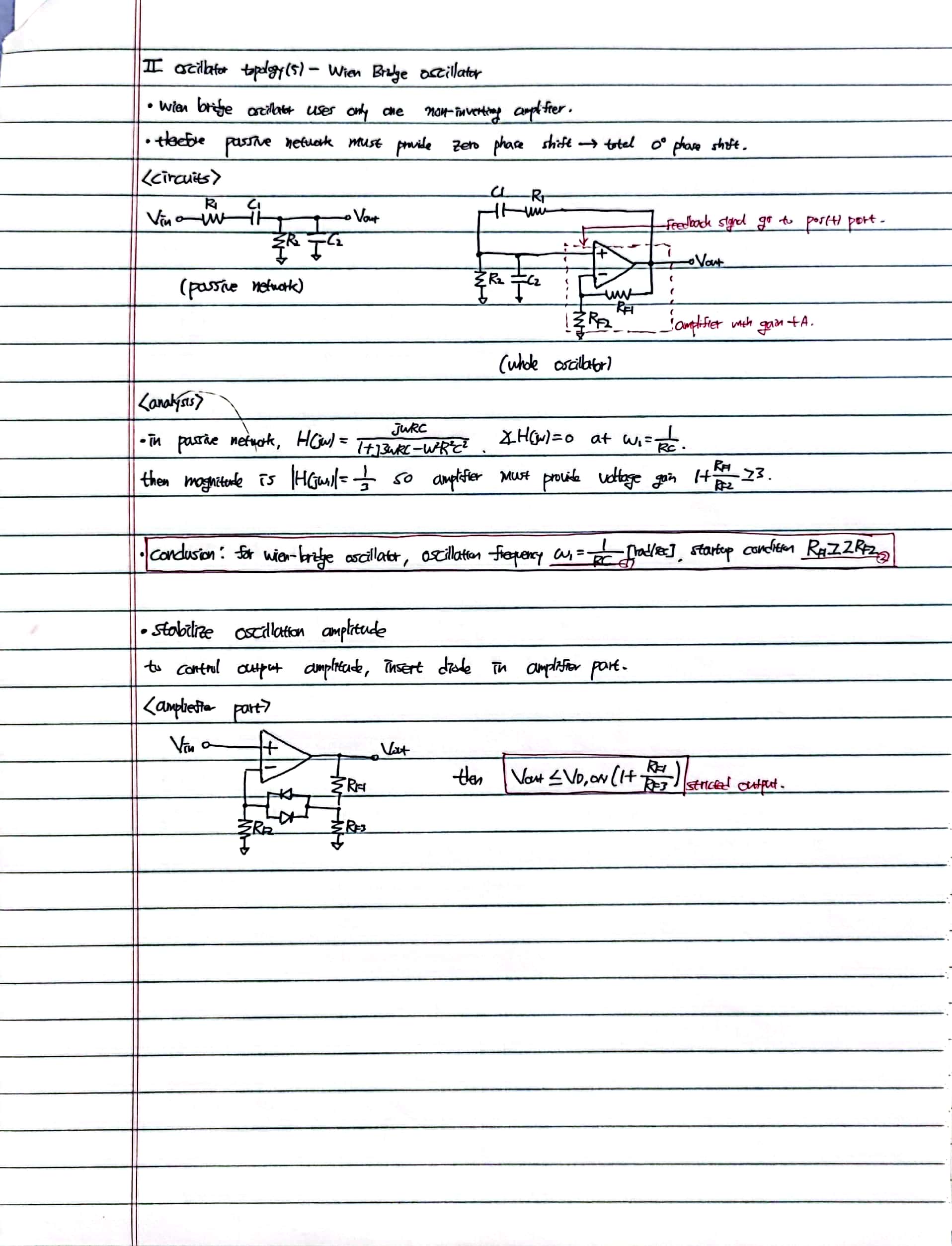 contents: Phase shift oscillator, Wien-Bridge osciilator, Crystal oscillator