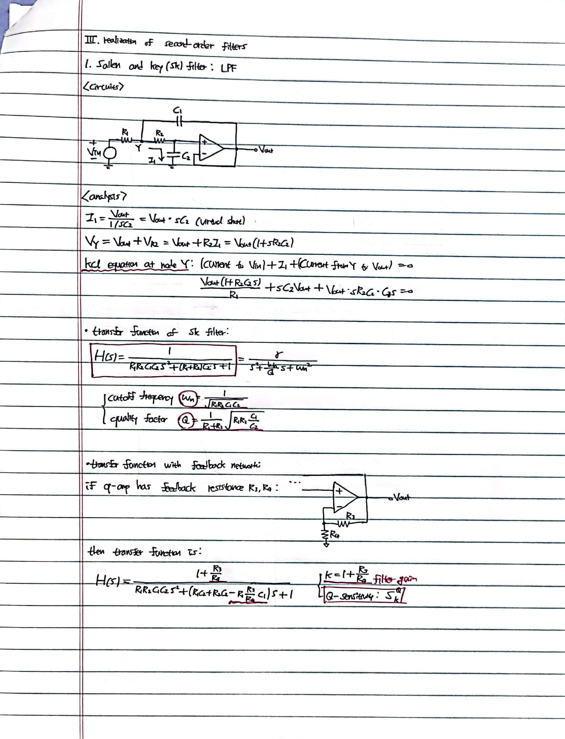 contents: Sensitivity in Analog filter, Second order filter, Sallen and Key filter