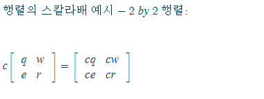 스칼라 c와 행렬 A가 있을 때, 행렬 cA는 A의 각 원소에 c를 곱해준 것과 같다.