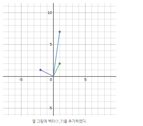 방정식의 해를 찾기 위해 우변의 1, 7 또한 벡터로 나타내어 보면