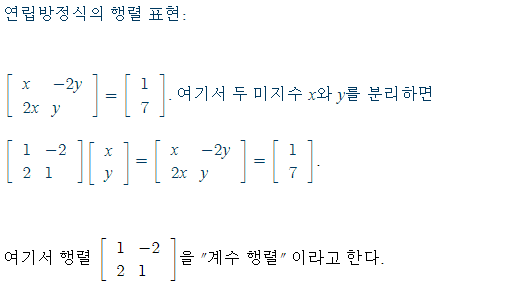 주어진 방정식의 행렬 표현은 다음과 같다.