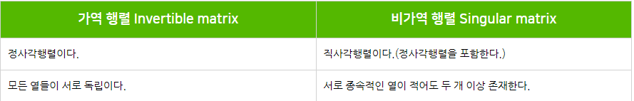 4. 요약: 가역 행렬과 비가역 행렬(1)