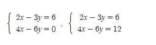 지금까지 행 그림과 열 그림을 사용하여 연립방정식의 해를 찾는 방법을 알아보았는데, 종종 해를 찾는데 실패할 수 있다. 연립방정식이 해를 가지지 않거나 무한한 해를 가질 때인데, 이때 열 그림이 어떻게 되는지 알아보고, 행렬 표현 방식이 어떻게 되는지 공부한다. 다음 연립방정식은 각각 해를 가지지 않고(첫번째) 무한한 해(두번째)를 가진다. 예시를 들기 위해 두 연립방정식을 준비했다. 첫 번째 연립방정식은 해를 가지지 않고, 두 번째 연립방정식은 무한한 해를 가진다.