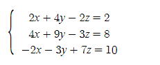 예시를 들기 위해 아무 3차 연립방정식이나 풀어본다:
