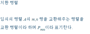 행 교환 과정 또한 행렬표현이 가능하다. 임의의 행렬 A의 행을 교환해주는 행렬을 치환 행렬(permutation matrix) 이라고 하며 P로 표기한다:
