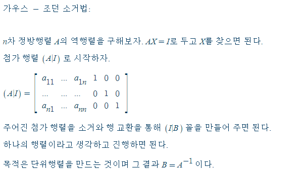 가우스 - 조던 소거법이 왜 올바른 역행렬을 주는지에 대한 개인적인 설명은 다음과 같다: