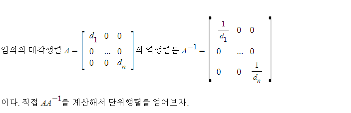 성질 6: 대각 행렬은 모든 대각성분이 0이 아닐 때 무조건 역행렬을 가진다.