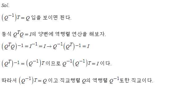 (4.5절 연습문제 20-a)Q가 직교 행렬이라고 하자. Q의 역행렬 또한 직교 행렬인 이유는 무엇인가?