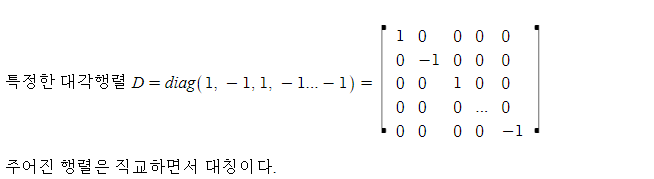 예시로 1과 -1 을 교차하며 원소로 가지고 -1 로 끝나는 대각행렬 D를 생각해보자.