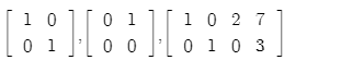 다음은 기약행 사다리꼴 행렬의 예시이다.