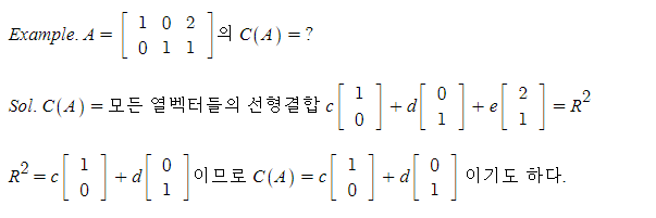 이때 열공간 표현시 굳이 모든 벡터들을 사용해야 힐 필요는 없는데, 예시를 통해 설명한다.