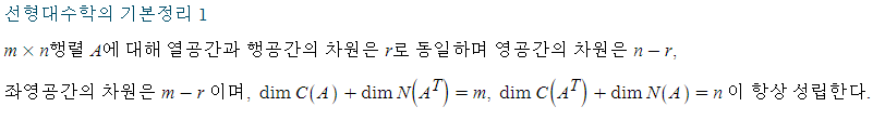 당연한 얘기지만 동일한 행렬에 대해 행공간의 차원과 영공간의 차원을 더하면 무조건 열의 개수와 같다는 것을 기억해 두자.