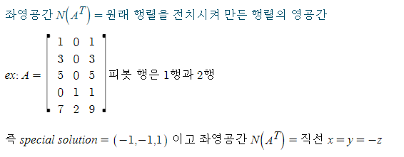 2. 좌영공간 = 전치 행렬의 영공간