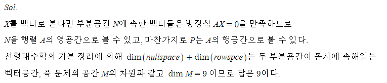(c) dim(N) + dim(P)의 값은 얼마인가?