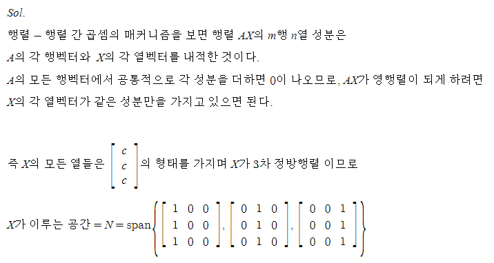 (a) AX 가 영행렬이 되는 X들로 이루어진 부분공간 N을 찾아라.