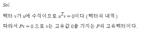 (b)u에 수직인 벡터 v가 있다고 하자. Pv=0을 보여라.
