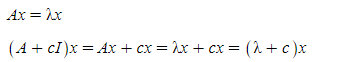 3. (A+cI)의 고유값은 lambda+c 이다.