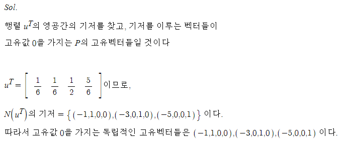 (c)고유값이 0인 P의 독립적인 세 고유벡터를 찾아라.