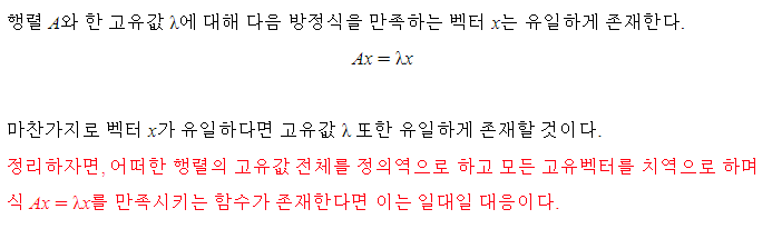 만약 어떠한 정사각행렬 A가 주어져있고 그 고유값이 lambda 라면 다음과 같은 사실이 성립한다.