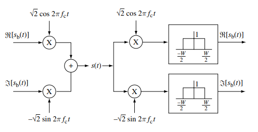 passband에서 baseband signal 또한 비슷한 방법으로 구할수 있다. 해당 과정의 block diagram은 다음과 같다:
