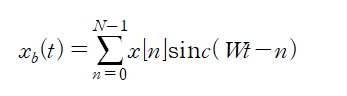 마지막 적분을 rect(t) 함수의 inverse Fourier Transform으로 생각하고 정리하면 interpolation formula를 얻는다.