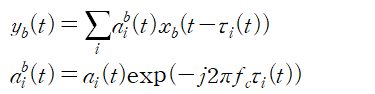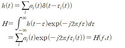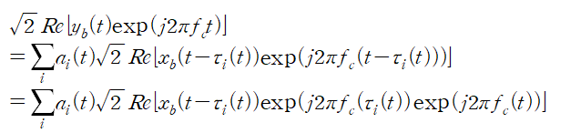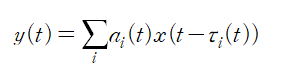 a와 tau는 scale factor와 시간 지연이다. 하나의 신호 x(t)를 송신하더라도 전파 반사 등에 의해 수신부에 도달하는 시간이나 strength가 다르기 때문에 식에 시그마 기호가 포함된다.