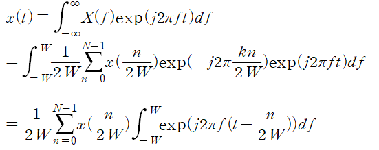 이다. 여기서 X(f)의 최대 주파수 성분을 W라고 하면 Ts=1/2W 가 되어야 한다.(Nyquist) 위의 식에 대입하고 정리하면