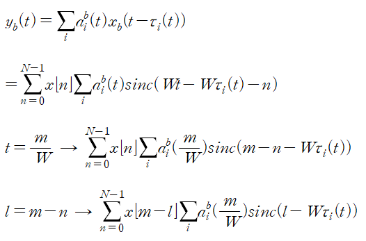 즉 discrete time baseband model에서 출력 y[m]과 impulse responce는 다음과 같다: