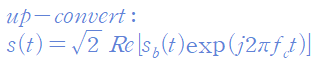 결론적으로 baseband equivalent signal s_b(t)에서 passband signal s(t)는 다음 공식을 사용하여 얻을 수 있다: