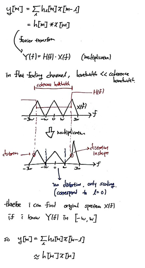 즉 Bandwidth W << Coherence Bandwidth인 경우 flat fading channel 이라고 한다.