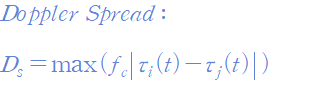 이때 각 경로간 발생하는 도플러 편이의 최대값을 Doppler Spread 로 정의한다: