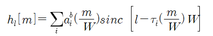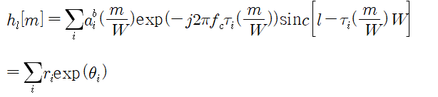 임펄스 응답 h_l[m] 에서 시그마의 i는 각각의 경로를 나타내고 따라서 임펄스 응답은 다양한 경로를 통해 도달하는 신호의 합으로 생각할수 있다. 특정 시간 m에서의 임펄스 응답 h[m]을 magnitude와 phase 항으로 간단하게 쓰면 다음과 같고,