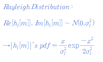 또한 h[m] 자체는 다음과 같은 분포를 따르며 이를 Rayleigh Model 이라고 한다: