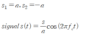 마지막으로 이진 신호 0,1을 구분 가능하게 하는 scalar s_1과 s_2를 constellation라고 하며, 이를 복소평면에 나타낸 것을 constellation diagram 이라고 한다.