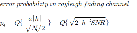 channel의 표현이 1에서 다루었던 것과 매우 유사해졌기 때문에, |h|x = u로 치환하여 Rayleigh fading channel에서의 error probability를 계산할수 있다. (constellation이 +- a|h|인 상황으로 생각하자.)