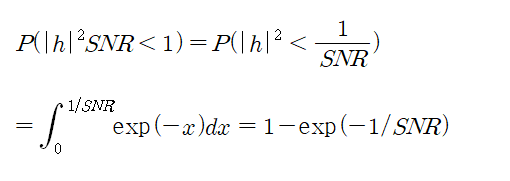 h가 Rayleigh 분포를 따를 때 |h|^2이 지수분포를 따른다는 것을 알고 있으므로, channel이 deep fading 상태가 될 확률 또한 계산할수 있다.