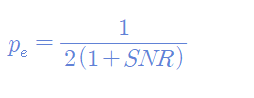 Orthogonal modulation의 SNR값이 a^2 / N_0 이므로 에러 발생 확률을 SNR에 대한 식으로 정리하면 다음과 같다: