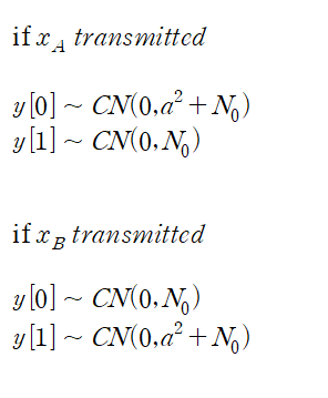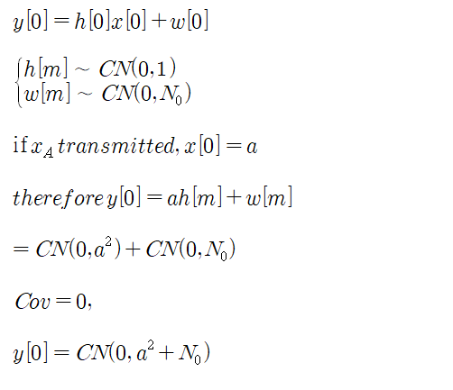 x_A가 수신되었을 때 y[0]의 분포는 아래와 같은 과정을 통해 찾을 수 있고(y[0], y[1]이 독립이라 가정)