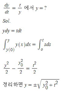 1. 변수분리형 미분방정식: f(y)dy = g(t)dt 꼴