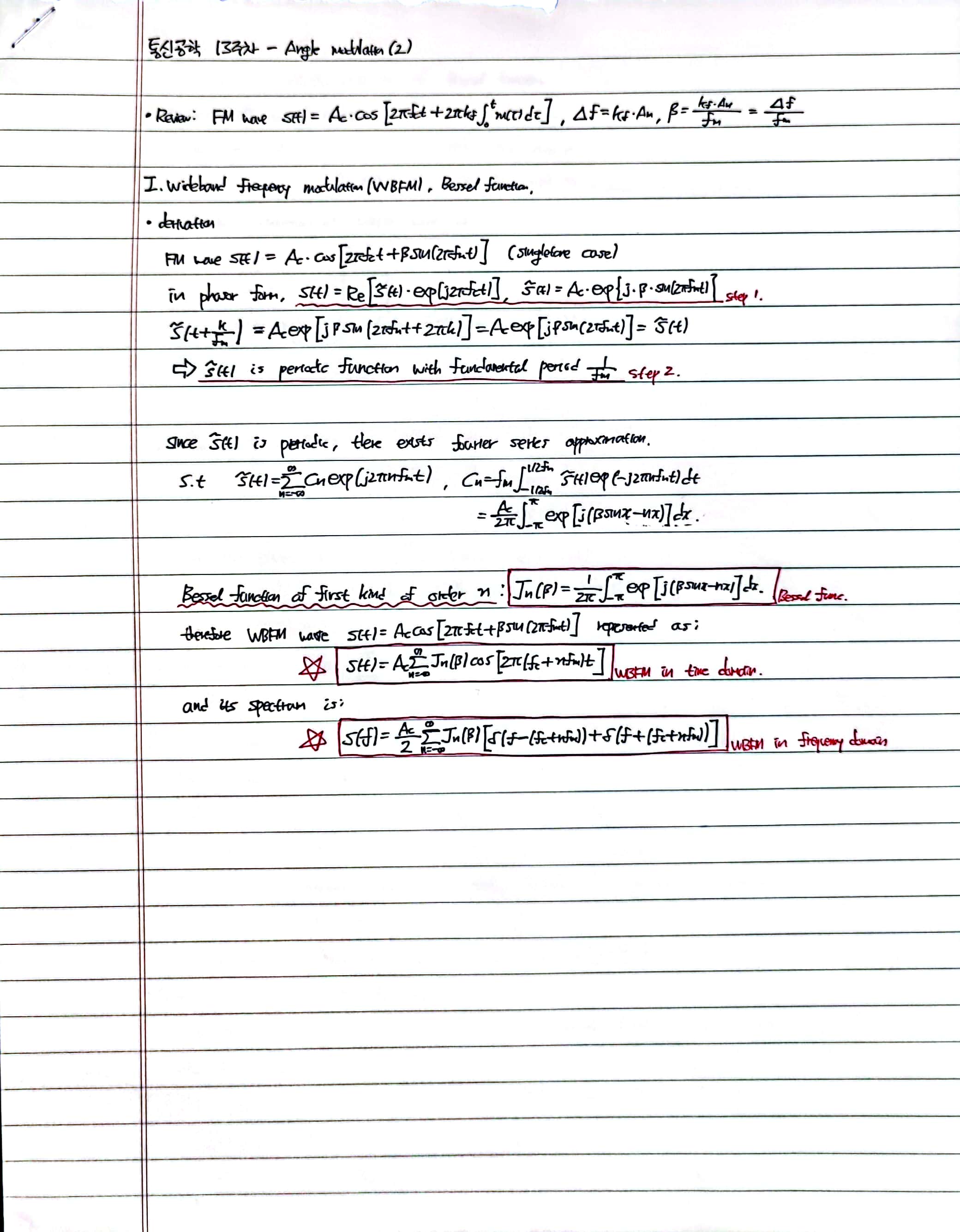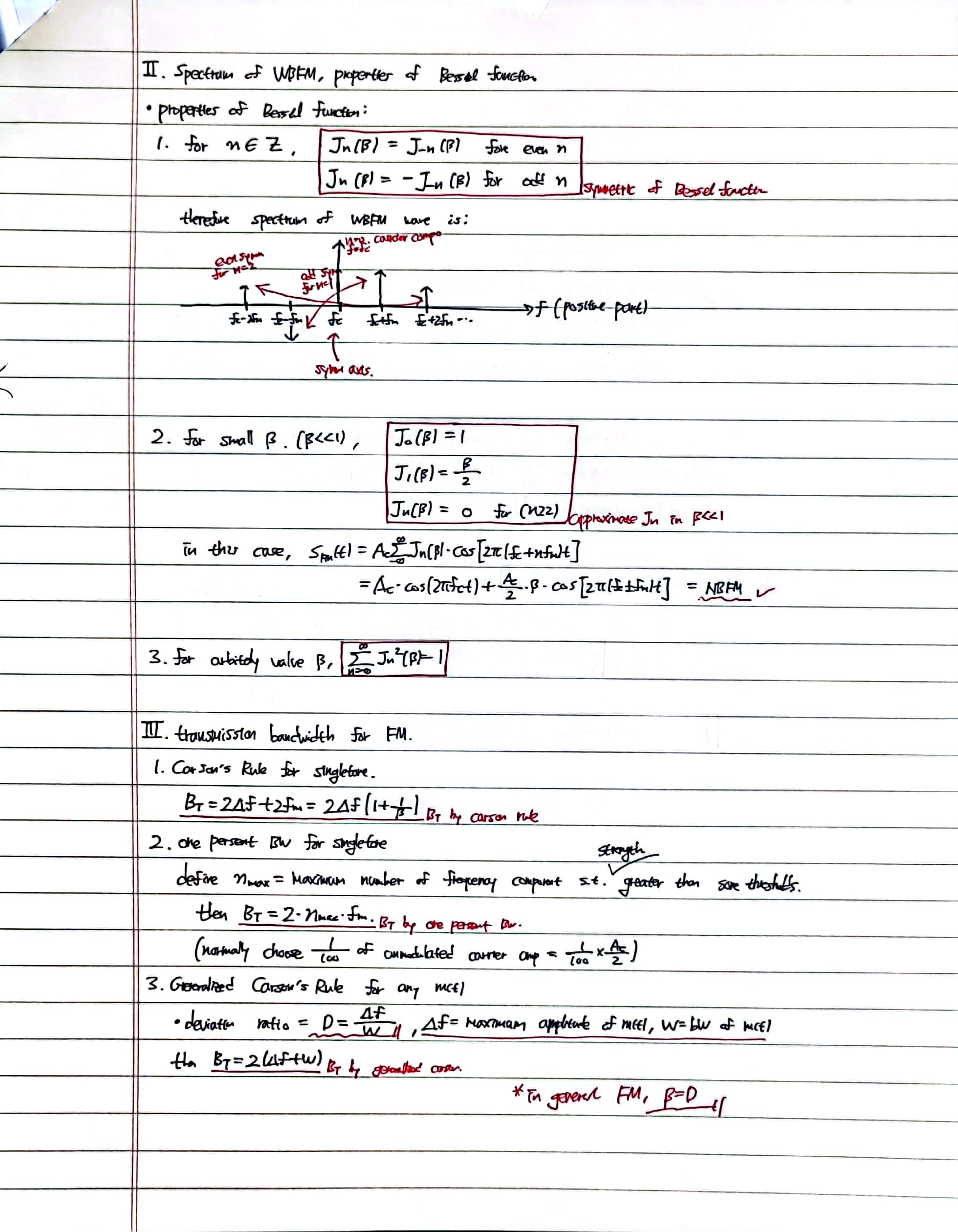 Contents: wideband frequency modulation, Bessel function, transmission bandwidth